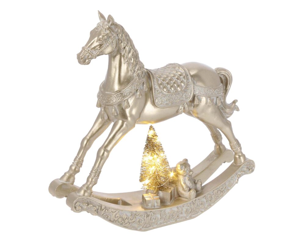 Decorazione Cavallino a Dondolo Edwyn Champagne 29h in Poliresina – Bizzotto