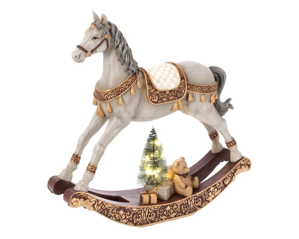 Con un’altezza di 29 centimetri , questa decorazione a forma di cavallino a dondolo diventa il punto focale ideale per il tuo allestimento natalizio. Il colore Oro e Rosso dona un tocco di eleganza e raffinatezza alla tua casa, mentre i dettagli finemente scolpiti aggiungono un tocco di fascino e nostalgia.