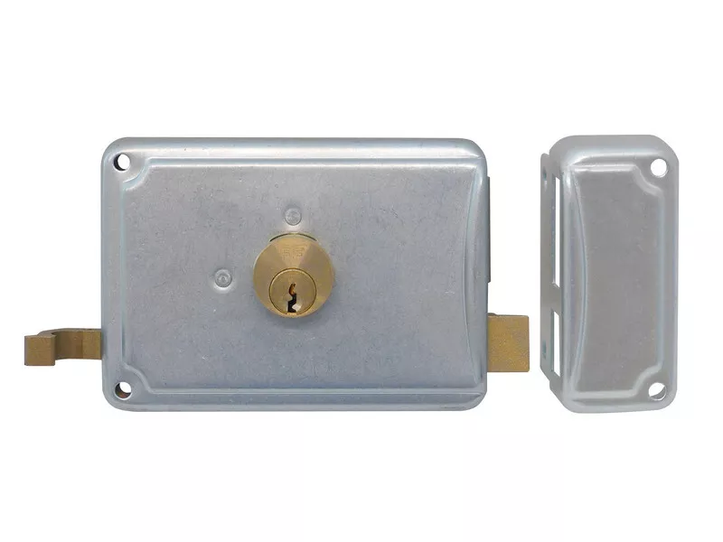 Serratura da applicare. 2 mandate, cilindro fisso, 3 chiavi, zincata.